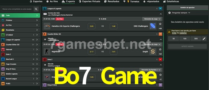 O Bo7 Game oferece uma grande seleção de opções de apostas em e-sports com probabilidades competitivas